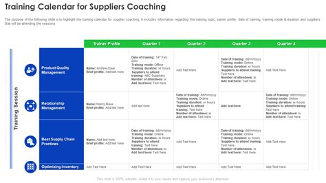 Simply browse, search, save & download our easy to use templates. A training calendar is a tool used by trainers and other specialists to schedule their upcoming training sessions. This slide showcases an employee's monthly workplace training calendar.